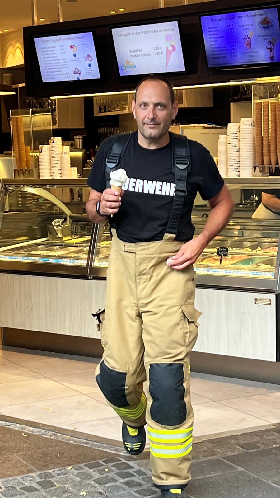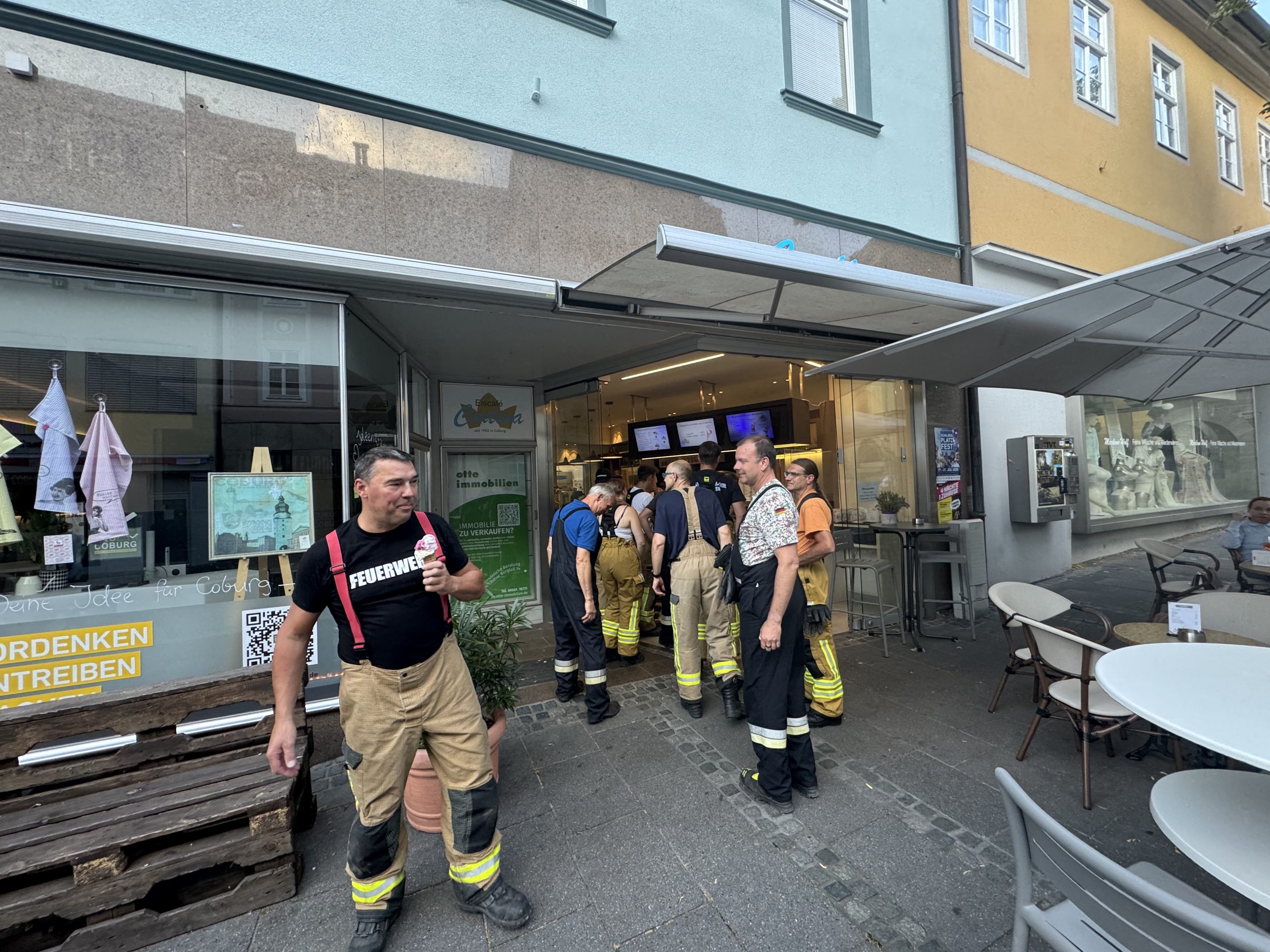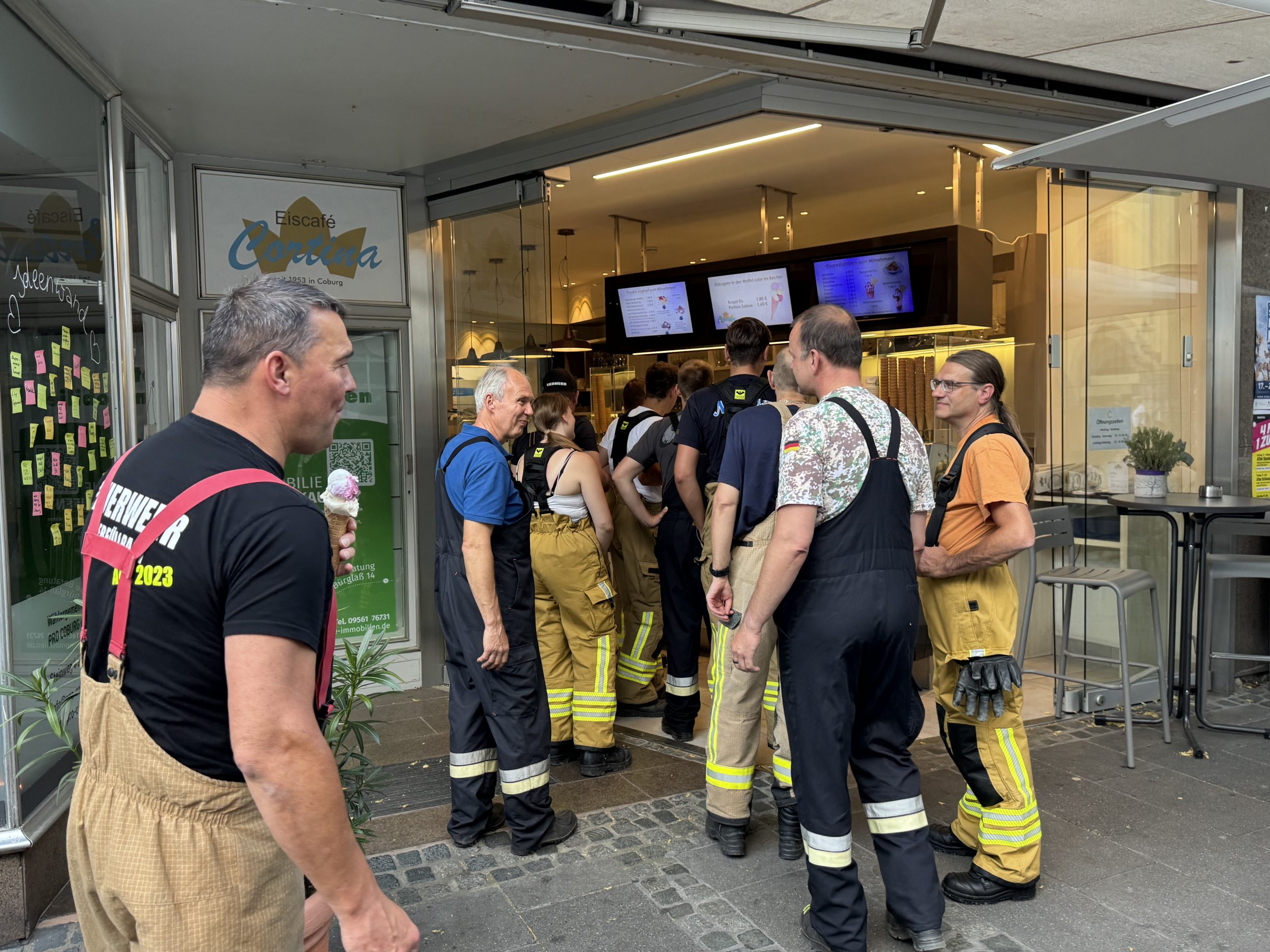 Nach erfolgreicher Übung fuhren die Aktiven nach Coburg in die Eisdiele und gönnten sich eine Abkühlung.