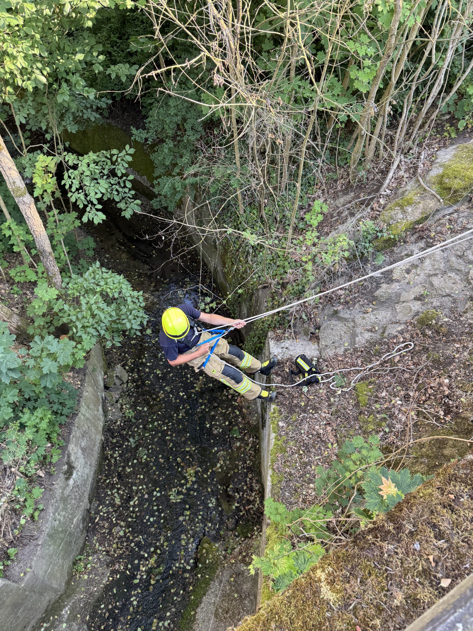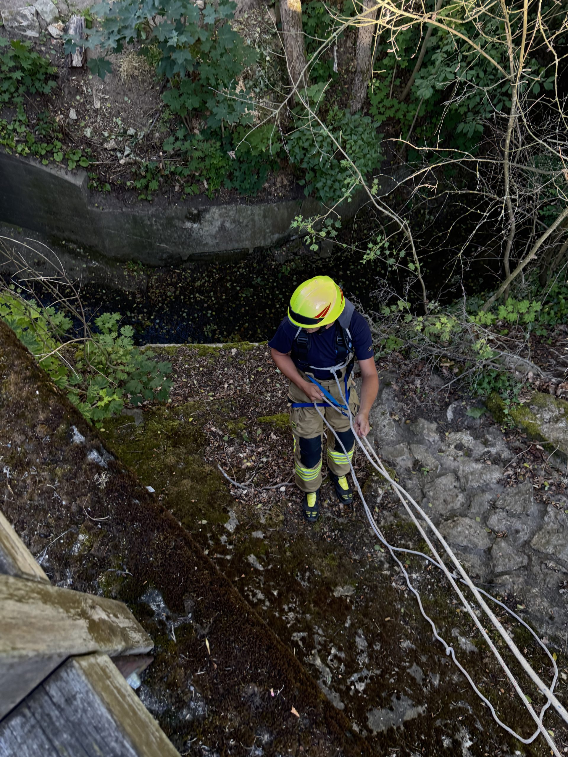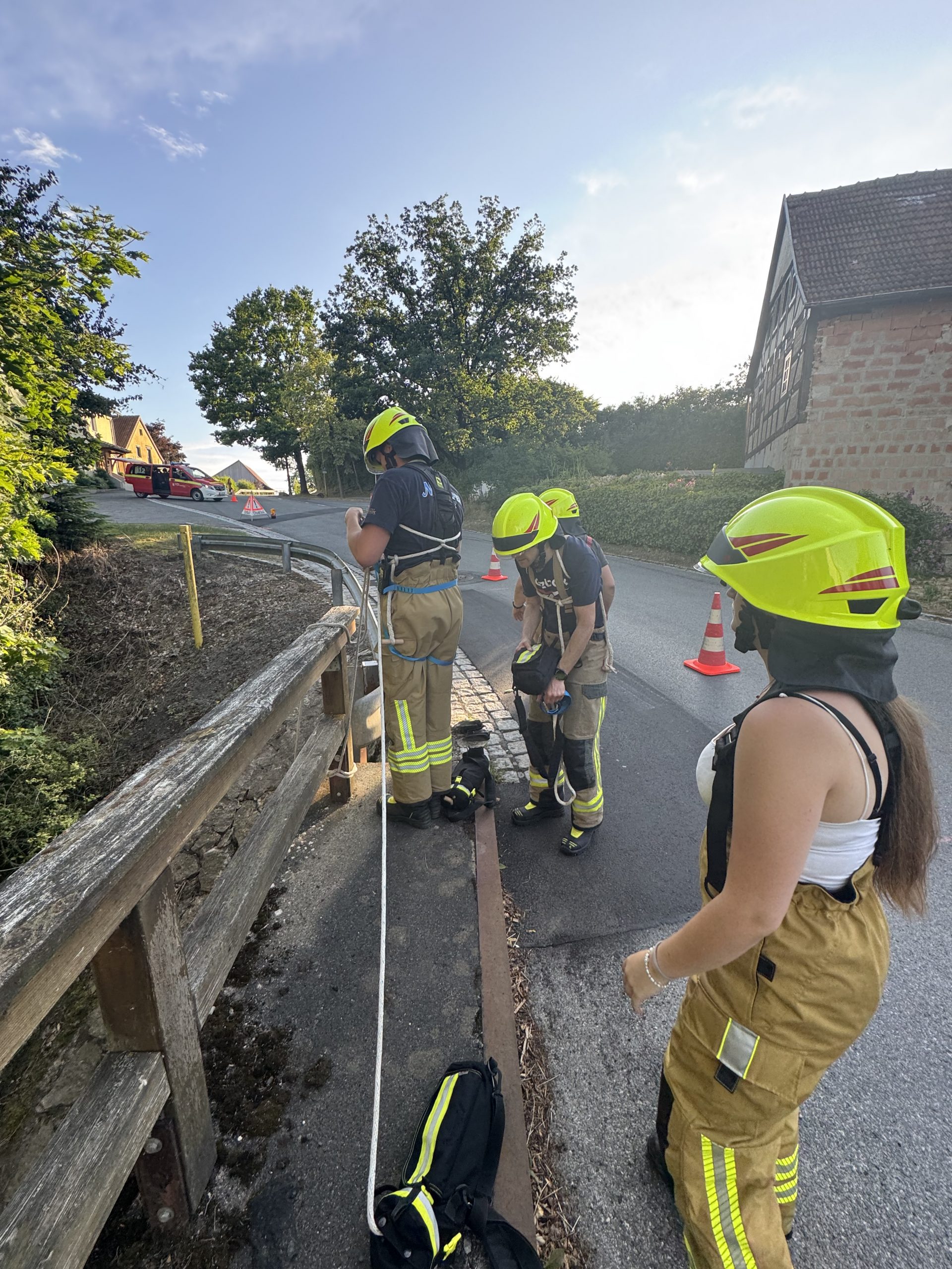 Am 26. Juni 2025 bei der Übung der Aktiven, war eine fiktive Personenrettung aus der Füllbach unterhalb der Brücke geplant.