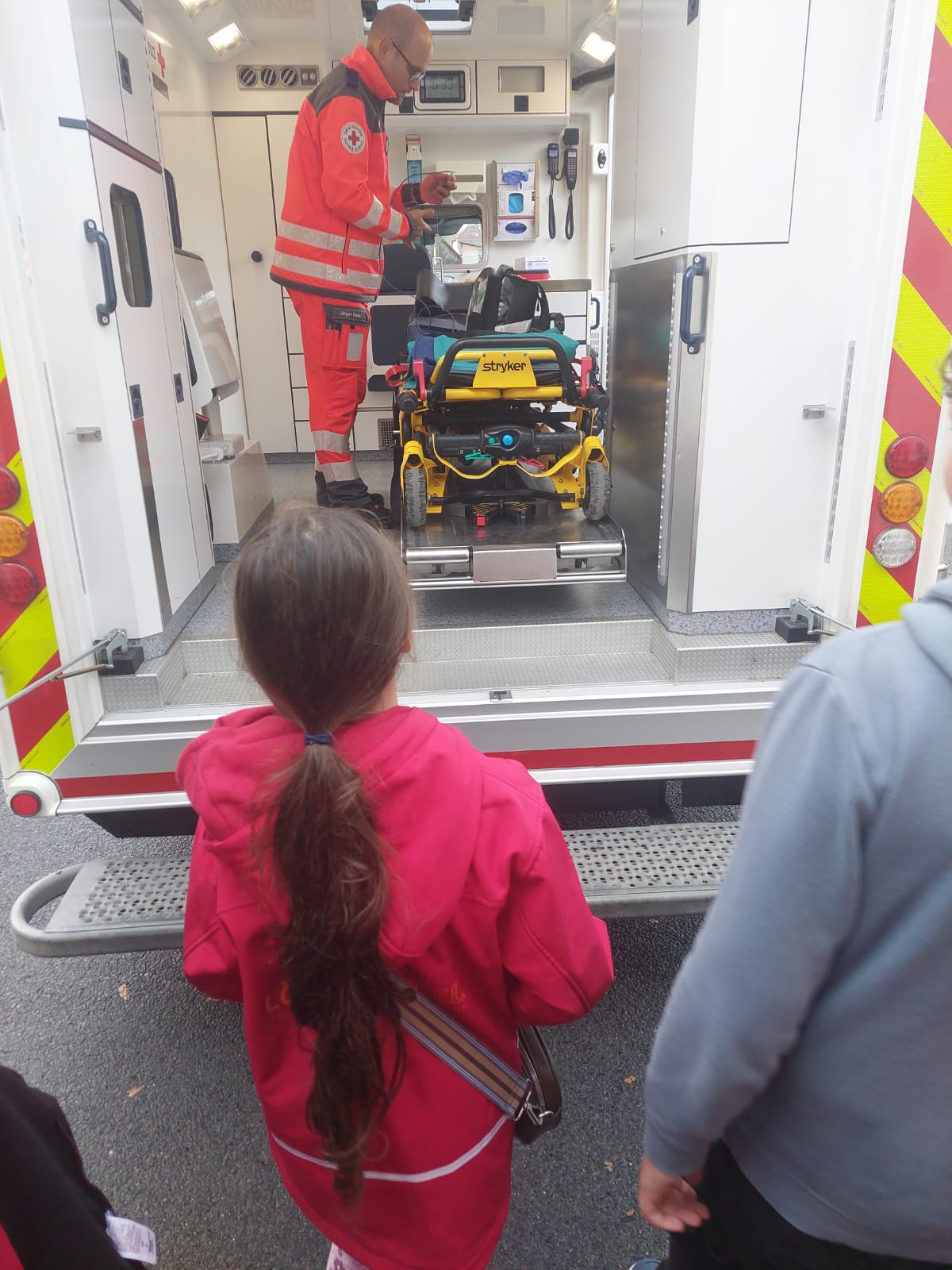 Hier zeigten die Kameraden des BRK den Kindern den Rettungswagen mit den vielen Gerätschaften. Sie durften auch einiges ausprobieren.